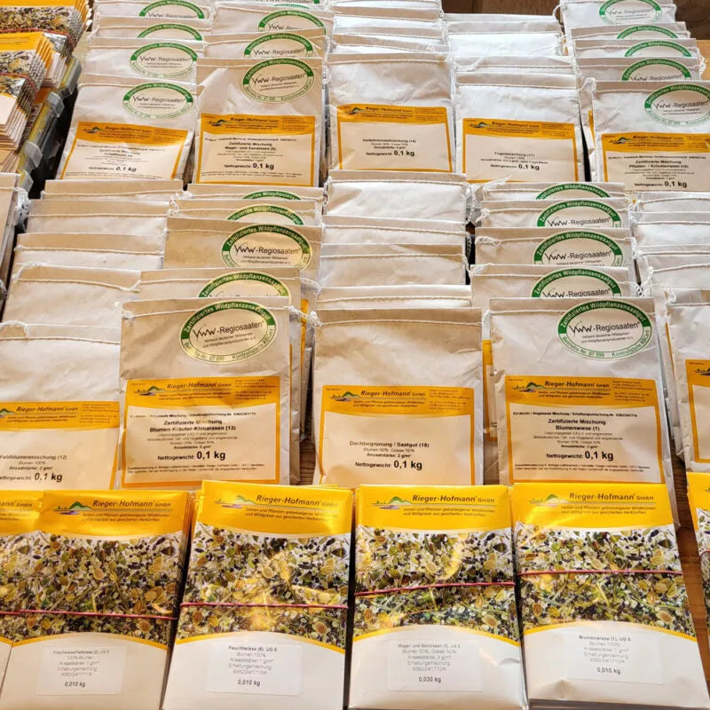 Unser Sortiment umfasst Mischungen aus eigener Produktion sowie ausgewählte Qualitätsmischungen der Rieger-Hofmann GmbH – einem der renommiertesten Spezialisten für gebietseigenes Wildpflanzensaatgut in Deutschland. Gemeinsam stehen wir für höchste Qualitätsstandards, gesicherte Herkunft und ökologische Verantwortung.